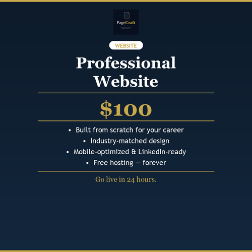 Receive a live URL within 24 hours. Add it to LinkedIn, your email signature, and every job application immediately.